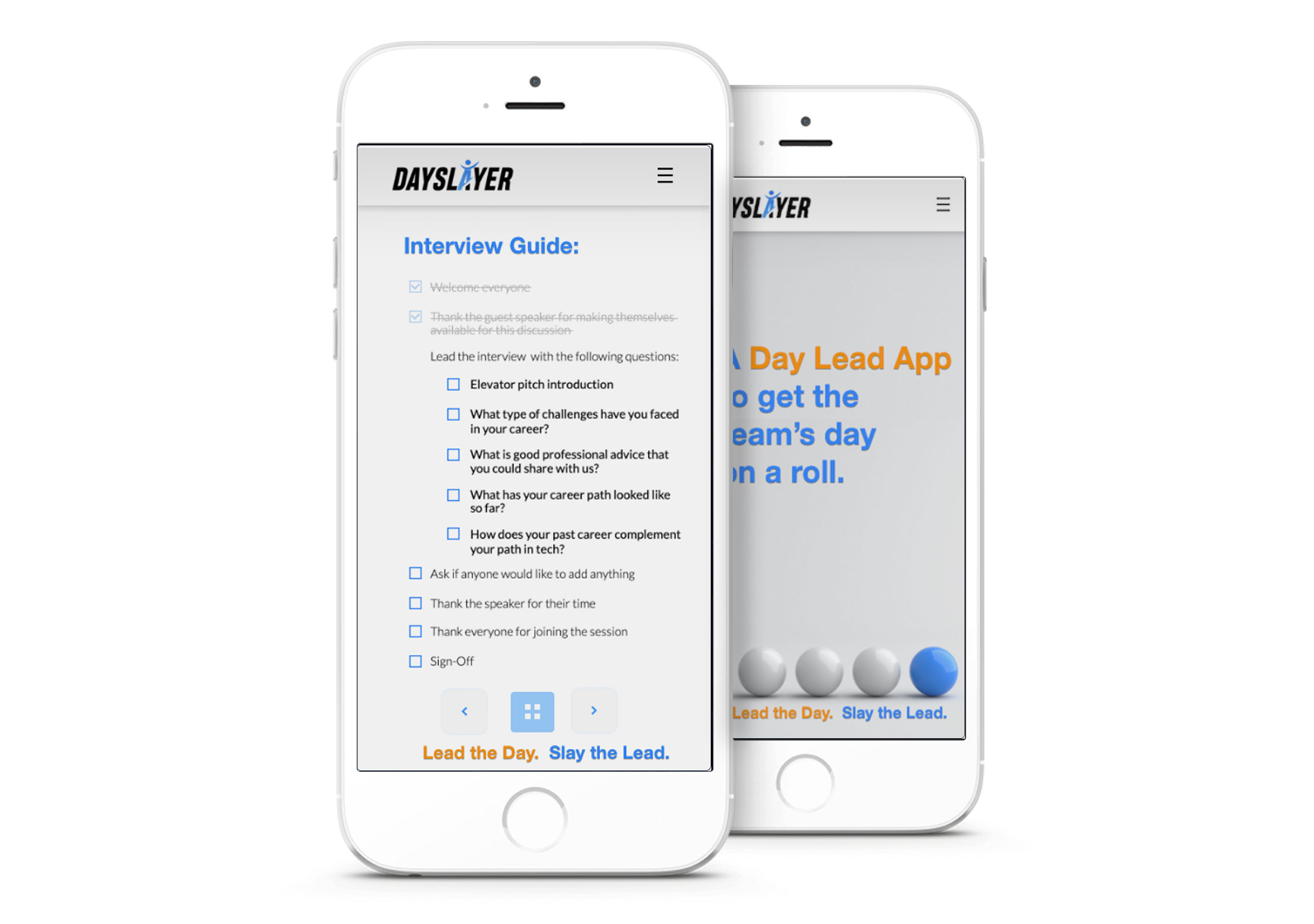 The goal of DaySlayer™ was to solve the biggest problem with being a team’s Day Lead: struggling with assembling the vast amount of information from disparate sources and tools to lead the team. The information resided in a half-dozen places, which needed to be parsed and then assembled into one place.